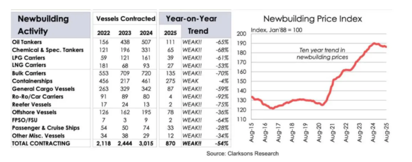 “集装箱船订单量已达到创纪录的1040万TEU,占现有船队的31.7%,为2010年以来的最高水平。”Linerlytica警告称:“上一次订单占现有船队的比例在2004-2009年间超过这一水平时,花了10年才解决运力供应过剩。”