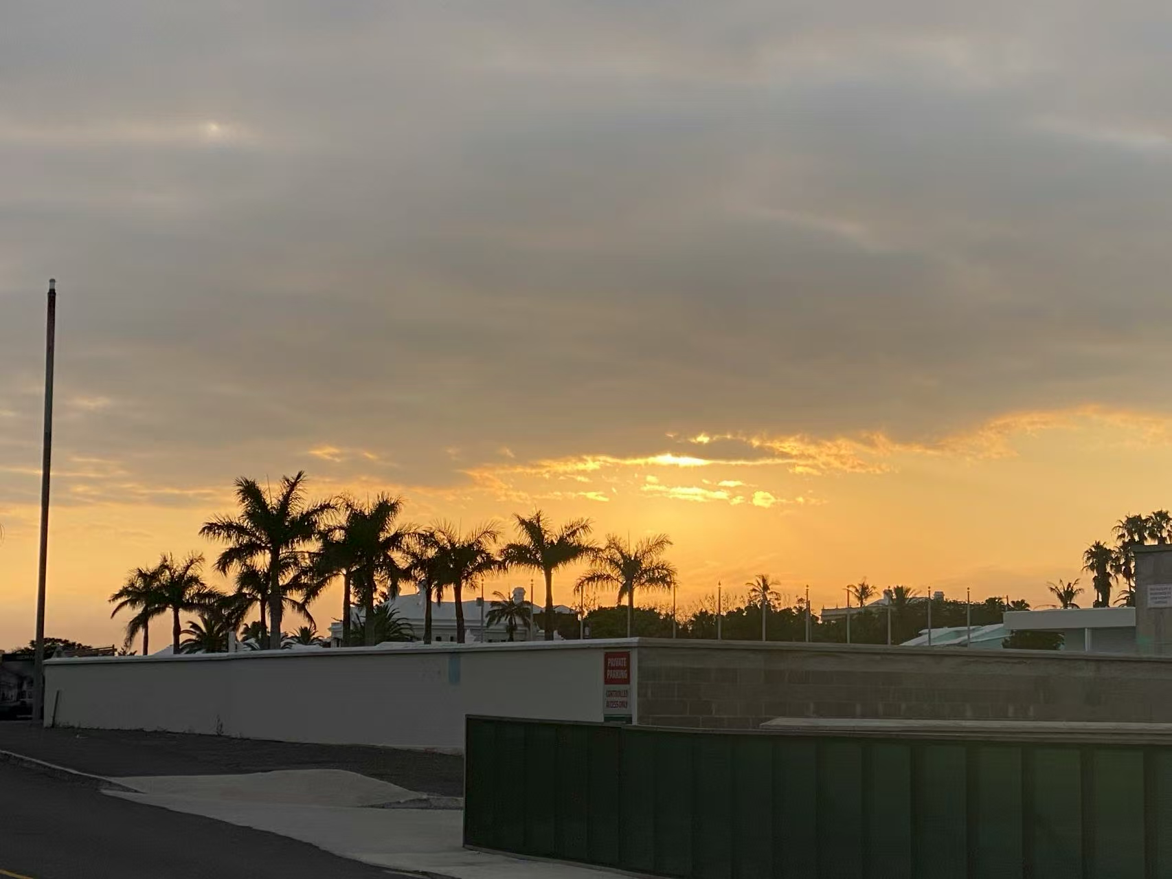 回来的路上,太阳看到棕榈树后硕大的月亮,红色的。她拿出相机拍了好几张。其实是个上玄月,它的阴影部分呈暗红色。但在黑暗的天空中,它依然圆满。